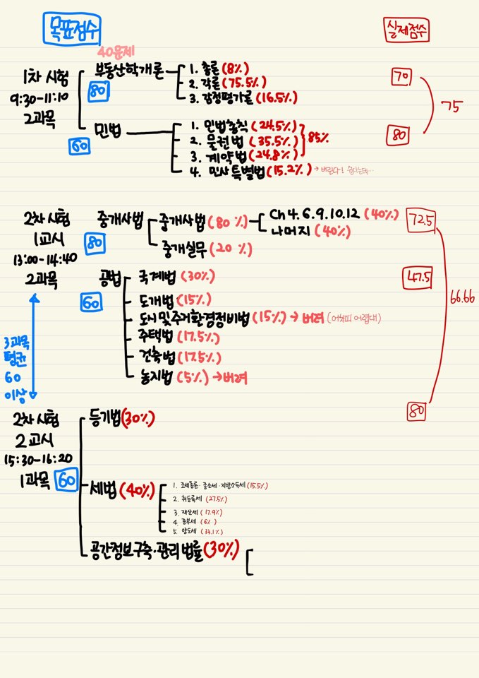 중개사법은 강의가 재밌고 암기법을 다 알려줘서 가장 재밌게 공부한 과목이었다.